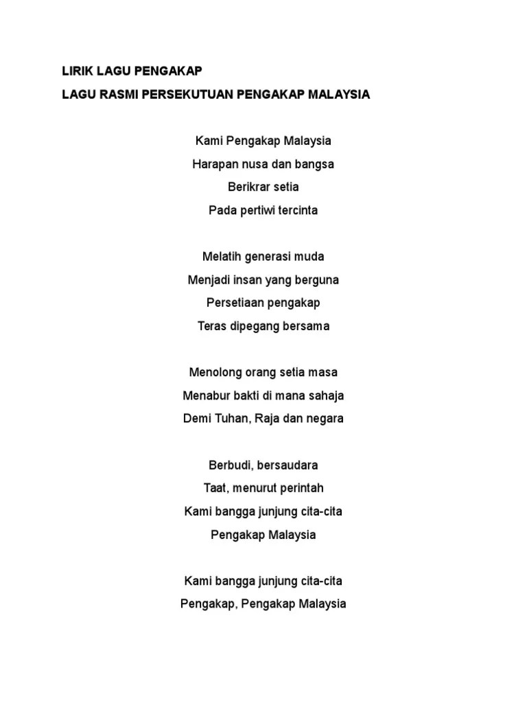Sekolah menengah maxwell merupakan sebuah sekolah menengah harian yang terletak di jalan tun ismail (dahulu maxwell road), kuala lumpur. Lagu rasmi pengakap malaysia written by wong kok nian. Kami pengakap malaysia harapan nusa dan bangsa berikrar setia pada pertiwi tercinta melatih generasi muda menjadi insan yang berguna persetiaan pengakap teras dipegang bersama menolong orang setia masa menabur bakti di mana sahaja demi tuhan, …